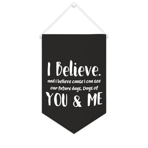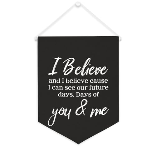 Drapeau mural en toile avec citation inspirante I Believe. And I Believe Cause I Can See Our Future Days. Days of You And Me Bannière murale à suspendre Décoration de bureau 25,4 x 30,5 cm
