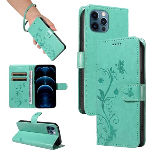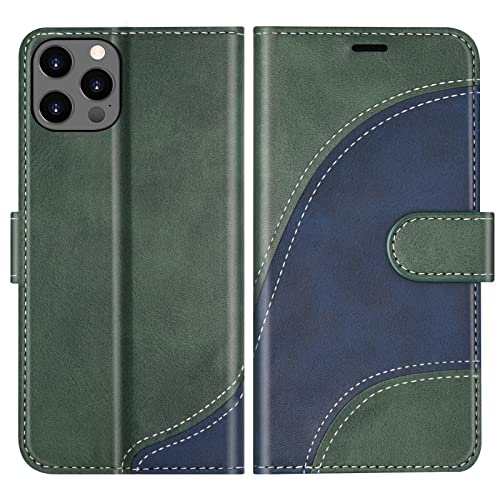 BoxTii Coque pour iPhone 13 Pro Max, Portefeuille Etui en Cuir PU, Magnétique Protection Housse Coque pour iPhone 13 Pro Max, Vert