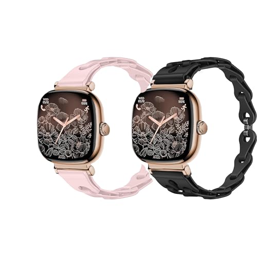 Lamshaw Bracelet Compatible avec Ice Smart 3.0 1.2" Smart Watch,Bracelet de Remplacement évidé en Silicone élastique de,les montres intelligentes Compatible avec Ice Smart 3.0 (2 Packs-Noir+Rose)