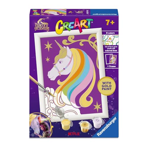Ravensburger - CreArt Série E : licorne étoilée, peinture avec numéros, kit de peinture pour enfants, cadre inclus, jeu éducatif et créatif, idée cadeau enfants 7 ans, 13 x 18 cm