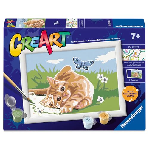Ravensburger - CreArt Série E : Chaton Joli, Peindre avec des numéros, Kit de peinture pour enfants, cadre inclus, jeu éducatif et créatif, idée cadeau enfants 7 ans, 13 x 18 cm