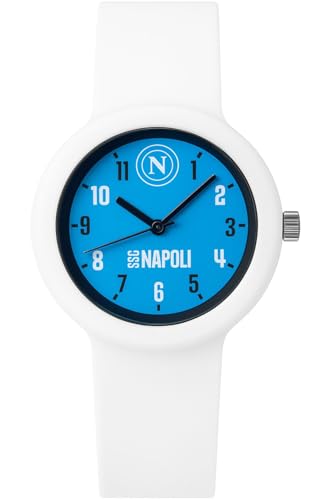 Clondo Montre analogique pour enfants, idée cadeau 6-12 ans pour Napoli Fan, boîtier 33 mm et bracelet en silicone, boîte officielle, Blanc