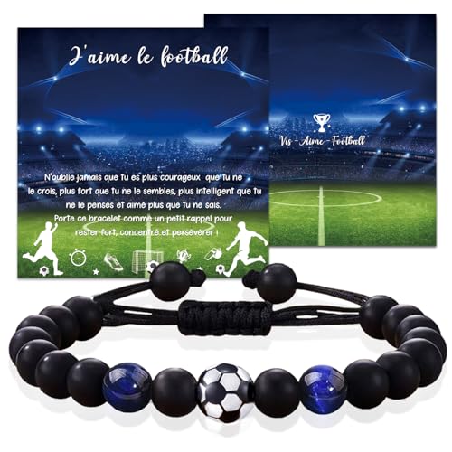 BOCHOI Cadeau Fils Bracelet Football Ado Bracelet Football Cadeau Original Anniversaire 10 11 12 13 14 15 16 17 18 Ans Pierre naturelle Bracelets Garçon Enfant Fils Anniversaire Noel Homme