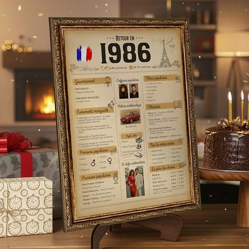 CROWNLY CRYSTAL® Retour en 1986 Cadeau 40 Ans Homme Femme – Affiche Anniversaire 40 Ans Vintage Poster Décoration Murale – Idée Cadeau Original Ami Amie Collègue – avec Support