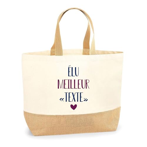 Planetee Sac Cabas de Plage Personnalisable | Toile de Jute Coton Courses Idée Cadeau Famille Copine Amie Collègue Travail (Élu Meilleur)