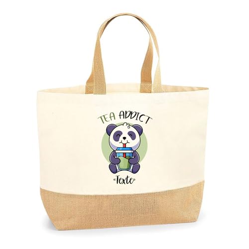 Planetee Sac Cabas de Plage Personnalisable | Toile de Jute Coton Courses Idée Cadeau Collègue Amie Maman Papa (Thé Addict)
