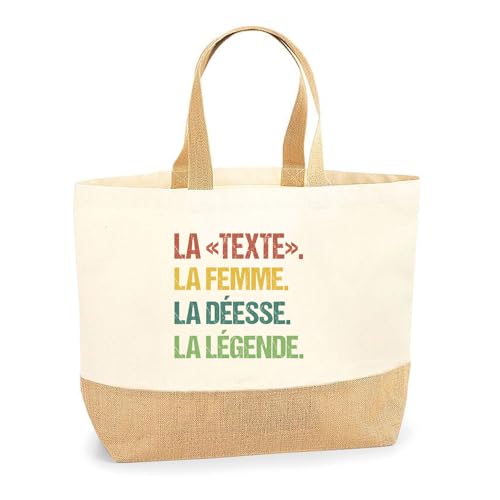Planetee Sac Cabas de Plage Personnalisable | Toile de Jute Coton Courses Idée Cadeau Famille Copine Amie Collègue Travail (Déesse Légende Couleur)