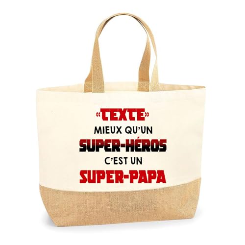 Planetee Sac Cabas de Plage Personnalisable | Toile de Jute Coton Courses Idée Cadeau Collègue Amie Maman Papa (Super-Héros c'est un Super-Papa)