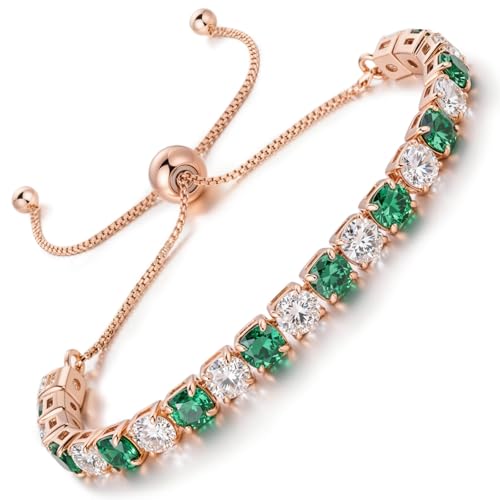 LOVANS Bracelet Femme Tennis Rivière Bijoux Zircones Vertes et Blanches Cristal Placage Or Rose Réglable, Pour Poignet de 8 à 22 cm, Idée Cadeau Petite Amie Saint-Valentin