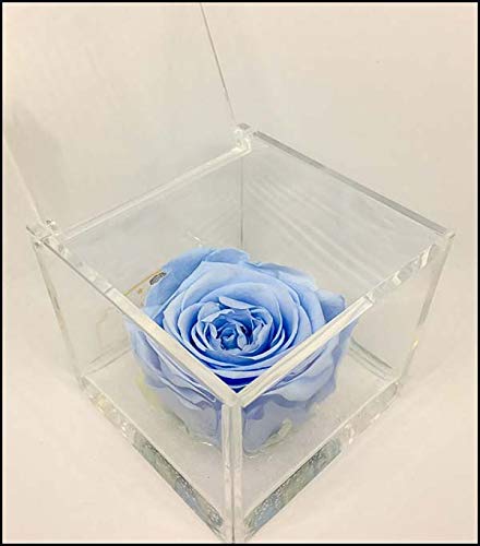 PremiumRose Rose Stabilisée Cube 6cm Vraie Rose Eternelle, Idée Cadeau Maman, Petite Amie, Idée Cadeau d'anniversaire, Remise de Diplôme (Bleu Clair - A 1064)