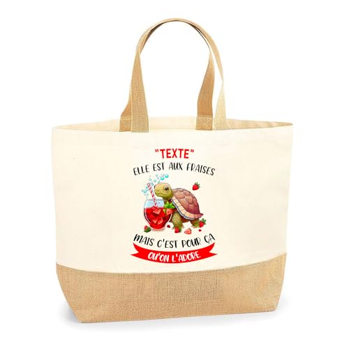 Planetee Sac Cabas de Plage Personnalisable | Toile de Jute Coton Courses Idée Cadeau Collègue Amie Maman Papa (Elle est aux Fraises)