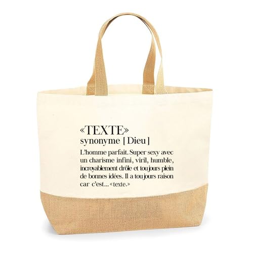 Planetee Sac Cabas de Plage Personnalisable | Toile de Jute Coton Courses Idée Cadeau Collègue Amie Maman Papa (Definition - homme)