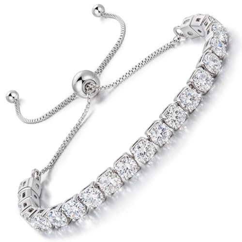 LOVANS Bracelet Femme Tennis Rivière Bijoux Zircones 5 mm Cristal Placage Rhodium Réglable, Pour Poignet de 8 à 22 cm, Idée Cadeau Petite Amie Saint-Valentin