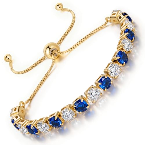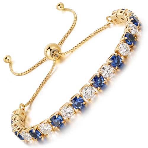 LOVANS Bracelet Femme Tennis Rivière Bijoux Zircones Bleues et Blanches Cristal Placage Or Réglable, Pour Poignet de 8 à 22 cm, Idée Cadeau Petite Amie Saint-Valentin