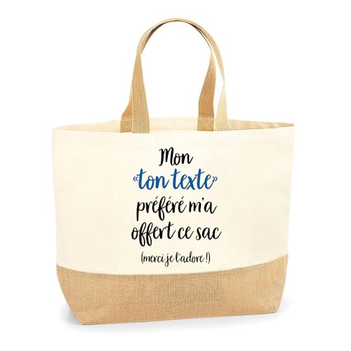 Planetee Sac Cabas de Plage Personnalisable | Toile de Jute Coton Courses Idée Cadeau Famille Copine Amie Collègue Travail (Mon préféré m'a offert se sac)