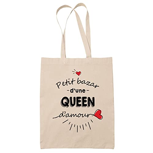 Planetee Sac Tote Bag Petit Bazar d'une Queen d'amour | Idée Cadeau Amie Potes Copine Friendship Amitié Anniversaire Noël Sac Cabas Réutilisable