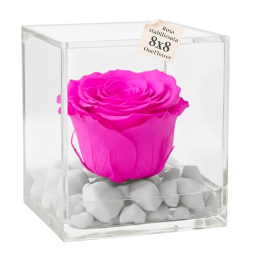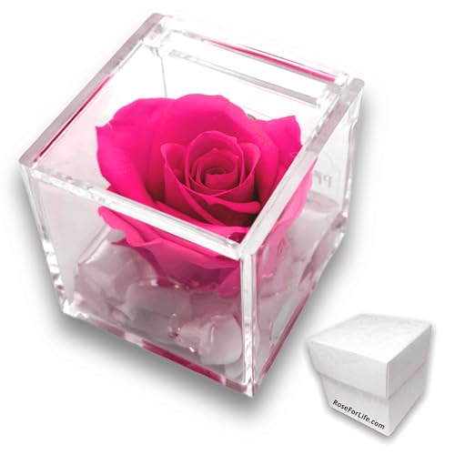 PremiumRose Fuchsia Stabilisé et parfumé 8cm Rose Cube avec Vraie Rose Eternelle, Idée Cadeau Maman, Petite Amie, Anniversaire, Remise de Diplôme (Fuchsia - A 1082)
