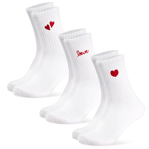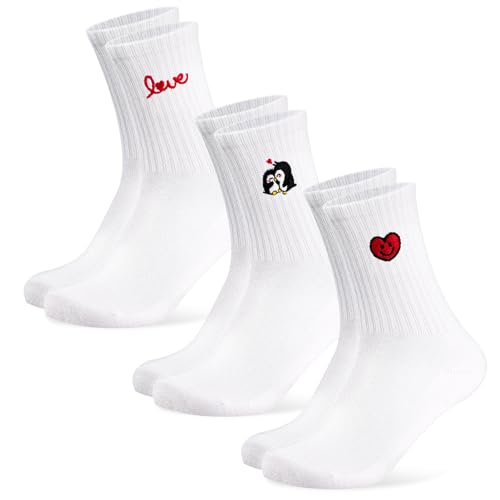 Niofind Chaussettes Personnalisées Femme, 3 Paires de Chaussettes de Tennis en Coton avec Motif Cœur, Chaussette Rigolotes 35-38 39-42, Idée Cadeau Saint-Valentin Anniversaire pour petite amie.