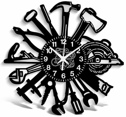 Instant Karma Clocks Outils Bois Artiste ➤ Horloge Murale Hydraulique Mécanique Garage Le Maçon Tools Charpentier Idée Cadeau - 30cm (Noir-02)