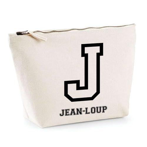 Trousse Jean-Loup Lettre Sport | Pochette Toilette Maquillage | Idée Cadeau Prénom Style Basket Université Anniversaire Oncle Parrain Beau Papa Collègue Départ Retraite Noël