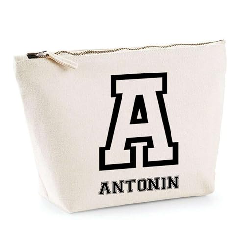 Trousse Antonin Lettre Sport | Pochette Toilette Maquillage | Idée Cadeau Prénom Style Basket Université Anniversaire Oncle Parrain Beau Papa Collègue Départ Retraite Noël