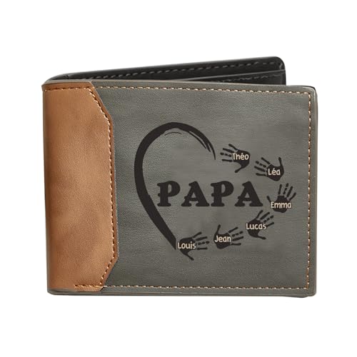 VEELU Portefeuille Homme Personnalisé Cadeau Papa - Gravure 1-6 Prénoms - Porte Monnaie et Porte Carte Personnalisé - Idée Cadeau Anniversaire, Saint-Valentin, Fête des Pères, Papi, Beau-Père