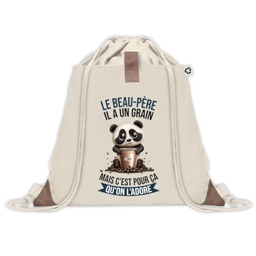 Sac à dos avec pochette Beau-Père Panda Grain | Sac de Sport et Gym avec cordelettes en Toile | Idée Cadeau Collègue Noël Anniversaire | Sac Doudou