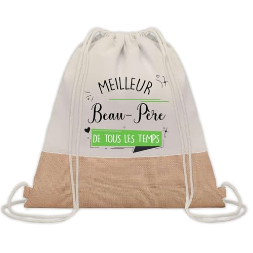 Planetee Sac à Dos Toile et Jute Beau-Père Aussi Génial – Sac avec Cordelettes – Idée Cadeau Original Collègue, Anniversaire, Départ Retraite ou Fin d’Année