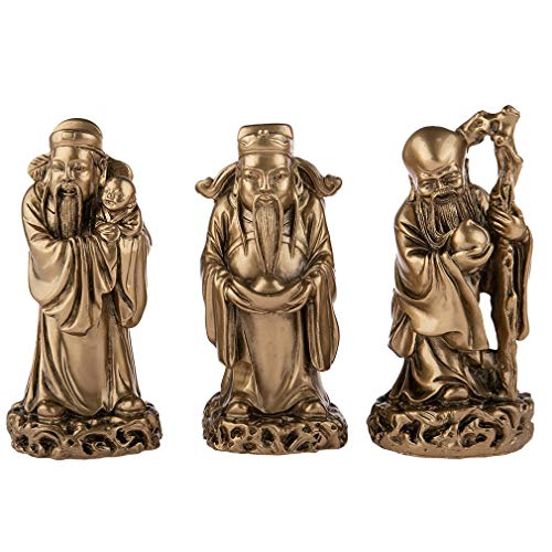 lachineuse - 3 Statuettes Dieux Fuk - Figurines Fuk, LUK et Sau - Coloris Doré - 12 cm de Hauteur - Déco Chinoise Asiatique - Décoration Feng Shui pour Maison, Bureau, Intérieur - Idée Cadeau Chine