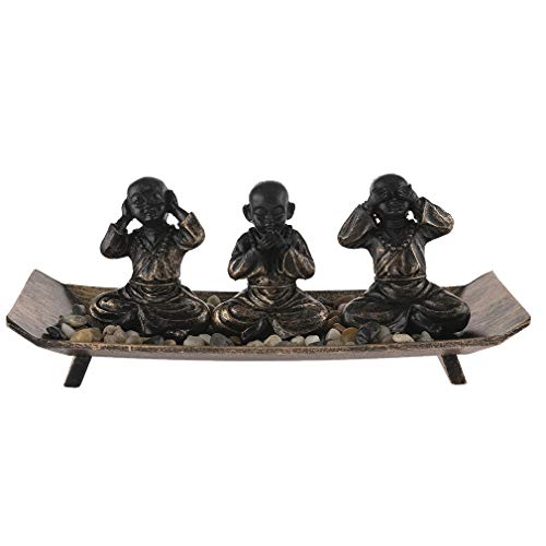 lachineuse - Jardin Zen Japonais - 3 Bonzes sur Plateau - Philosophie Bouddhiste - Décoration Zen - Intérieur Maison Bureau - Idée Cadeau Japon - Déco Asie
