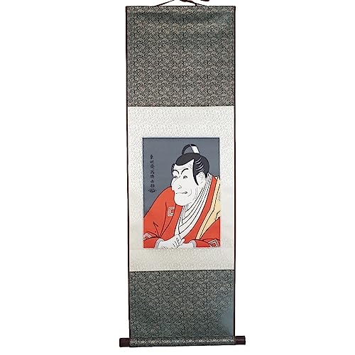 lachineuse - Kakemono Samouraï Traditionnel - Tapisserie Murale - Décoration Japonaise à Suspendre - 100 x 30 cm - Pour Maison, Bureau - Tableau Japonais Estampe - Coloris Gris - Idée Cadeau Japon