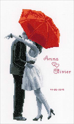 Vervaco Point De Croix Compté Kit Tableau Complet Set COUPLE S'EMBRASSER De Broderie Loisir Créatif Maison Decoration Cadeau DIY ca. 20 x 31 cm Counted Cross Stitch Embroidery