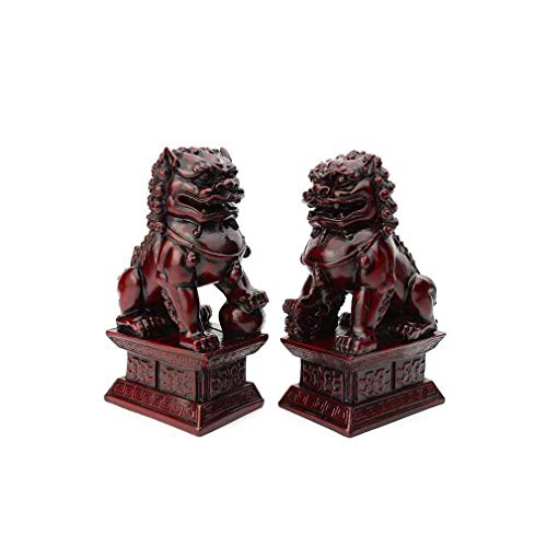 lachineuse - Statuettes Lions Fo Rouges - 2 Figurines Chiens Fu - 17 x 10 x 6,5 cm - Déco Chinoise Asiatique - Décoration Feng Shui pour Maison, Bureau, Intérieur - Idée Cadeau Chine Asie