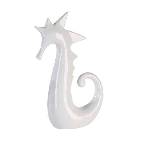 Casablanca Figurine Hippocampe - Céramique - émaillé Brillant - Blanc - Hauteur 38 cm - Déco - Sculpture - Accessoire Maison - Idée Cadeau - Objet de collectionMobiles décoratifs