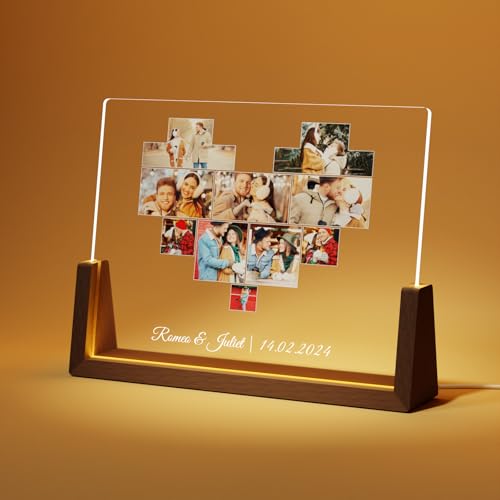 Cadeau Personnalisé Couple - Lampe Personnalisée avec Photo Prénoms Texte Date - Cadeau pour Femme Homme Copine Copain Original - Idee Cadeau de Noel Saint Valentin Anniversaire - Idées Cadeaux Noël