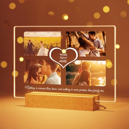 LUCKOR Idee Cadeau Noel Couple Copain et Copine - Cadre Photo Personnalisé - Cadeau Personnalisé pour Femme et Homme de Noël St-Valentin et Anniversaire - Cadeaux Lumineux Lampe Photo