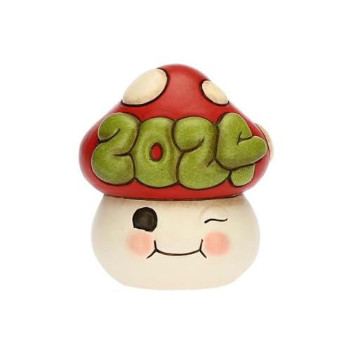 THUN, Champignon Ronnie Bonne Année 2024 en céramique décorée à la Main, décoration de Noël et du Nouvel an, idée Cadeau, 6,6 x 5,6 x 7,5 cm
