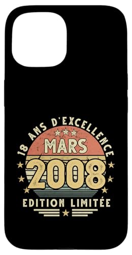 Mars 2008 Cadeau Anniversaire Mars 2008 18 Ans Homme Femme Coque pour iPhone 15