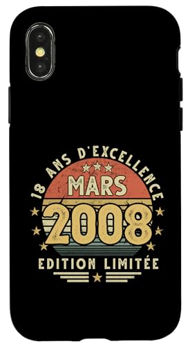 Mars 2008 Cadeau Anniversaire Mars 2008 18 Ans Homme Femme Coque pour iPhone X/XS