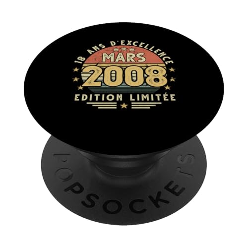 Mars 2008 Cadeau Anniversaire Mars 2008 18 Ans Homme Femme PopSockets PopGrip Adhésif