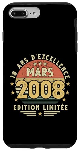 Mars 2008 Cadeau Anniversaire Mars 2008 18 Ans Homme Femme Coque pour iPhone 7 Plus/8 Plus