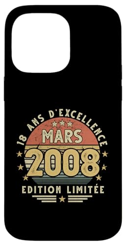 Mars 2008 Cadeau Anniversaire Mars 2008 18 Ans Homme Femme Coque pour iPhone 14 Pro Max