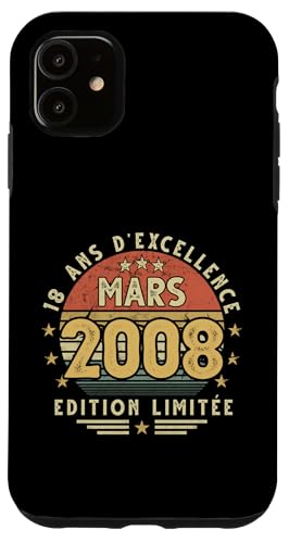 Mars 2008 Cadeau Anniversaire Mars 2008 18 Ans Homme Femme Coque pour iPhone 11