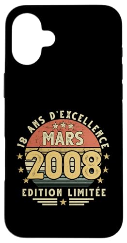 Mars 2008 Cadeau Anniversaire Mars 2008 18 Ans Homme Femme Coque pour iPhone 16 Plus