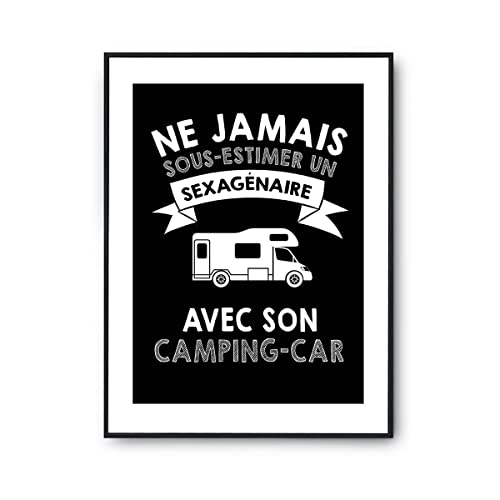 Planetee Affiche Homme camping car Sexagénaire | Poster Tableau Décoration Murale Camping cariste | idée cadeau anniversaire 60 ans Noël fête des Pères A4