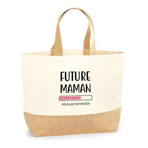 Otshirt Sac Jute Future Maman | Cabas de Plage Courses Coton et Toile de Jute | Idée Cadeau Mère Humour Original Noël Anniversaire Fête des Mères Famille Amour Naissance Retraite
