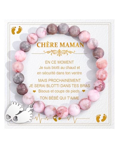 BOCHOI Bracelet Future Maman Cadeau Enceinte Femme Idee Cadeau Fete des Meres Future Maman Cadeaux Jeune Mama Original Baby Shower Cadeaux Grossesse Naissance Bracelet Pierre Naturelle Bijoux Mere