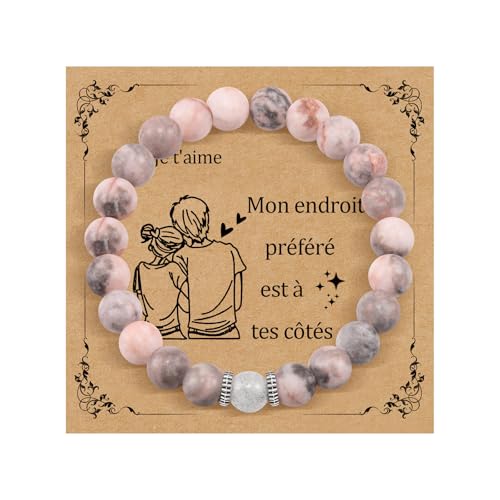 Bracelet CheersLife en Pierres Naturelles Cadeau pour Femme, Ado Fille, Mamie, Maman, Sœur, Amie et Future Maman Idée Cadeaux Noël