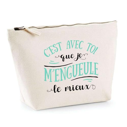 Trousse avec toi Que Je m'engueule Le Mieux | Pochette Toilette Maquillage | Idée Cadeau Copine Copain Couple Drôle Humour Original Anniversaire Amour Unique