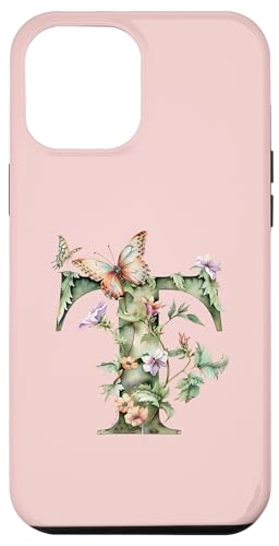 Coque pour iPhone 12 Pro Max Idée-cadeau Personnalisé Lettre T en Fleurs et Papillons